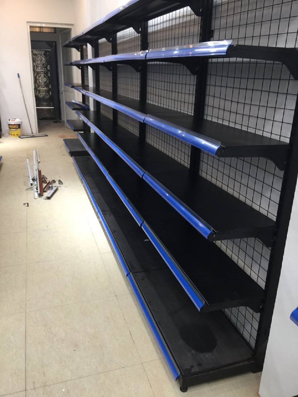 Là một loại kệ siêu thị như những loại kệ siêu thị khác chỉ có điều nó được sơn mầu sơn đen. Được khách hàng đặt mầu đen để phù hợp với không gian và sản phẩm mà khách hàng lựa chọn, giúp siêu thị của khách hàng đẹp nhất, tiện ích nhất.