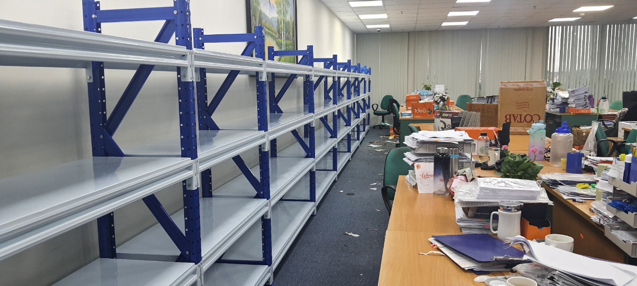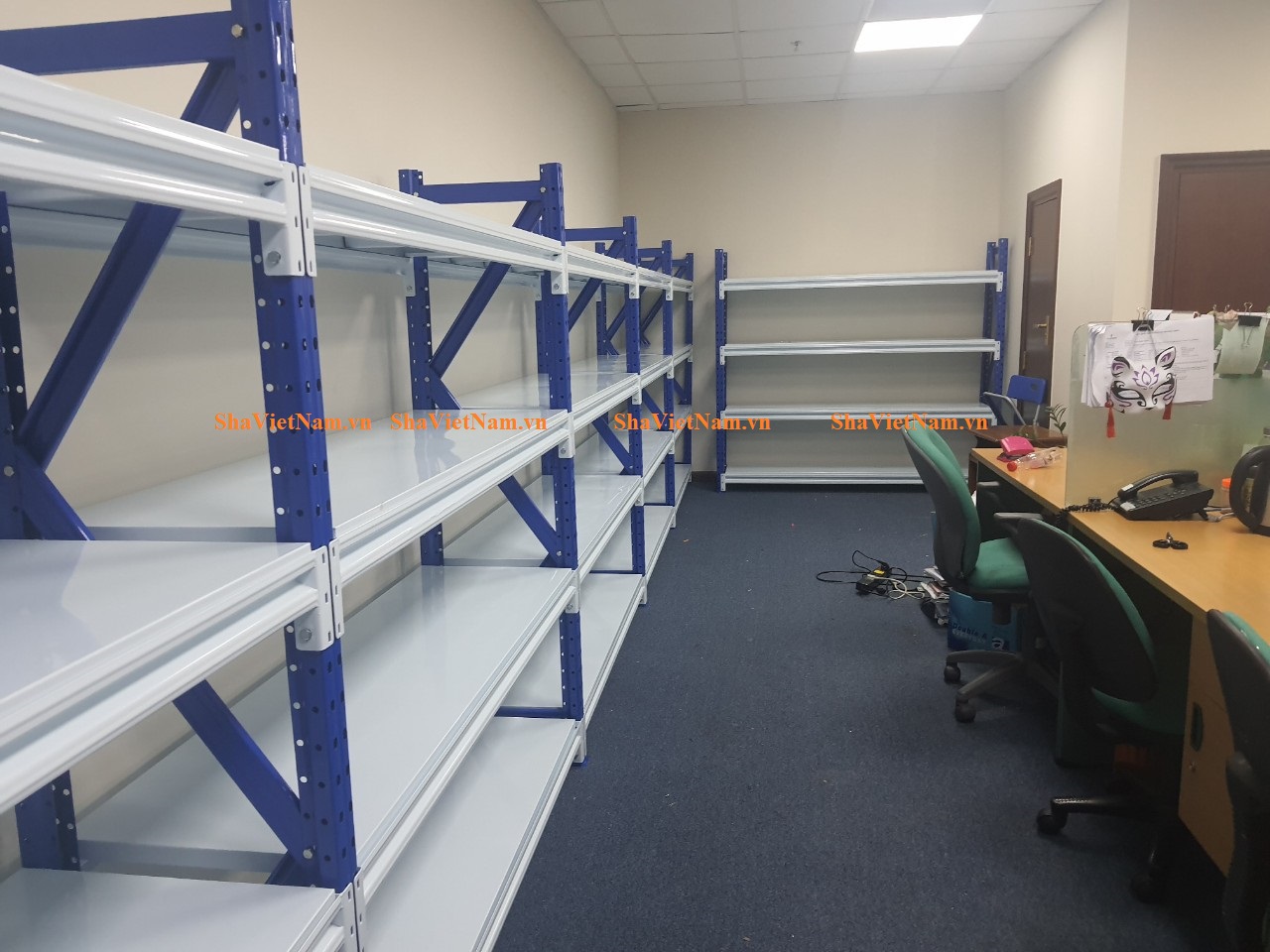 Kệ trung tải lần này được lắp xung quang phòng làm việc để cán bộ nhân viên ở đây chứa tài liệu trực tiếp của phòng. Một phòng làm việc mà vô cùng rộng, có lẽ đến 400, 500m2.