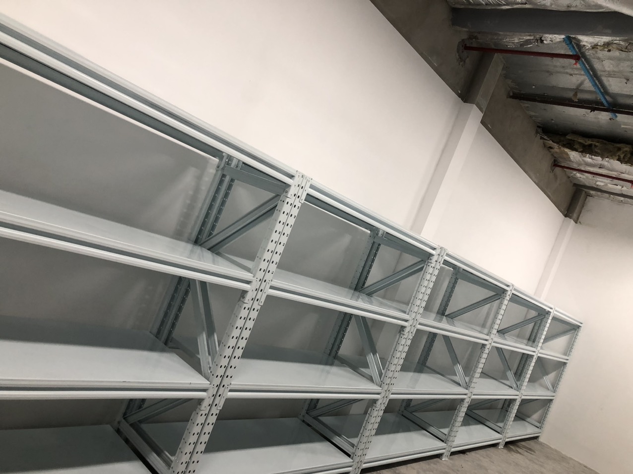 Kệ kho trung tải 3 tầng - Dự án tại Royal, Ngã Tư Sở là một đơn hàng nho nhỏ, với kệ trung tải mầu trắng lắp ngay dưới tầng hầm của toà nhà.