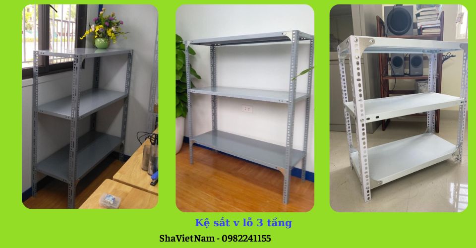 - Cao 1m - nếu là Kệ sắt v lỗ 3 tầng: https://www.shavietnam.vn/ke-sat-v-lo-3-tang