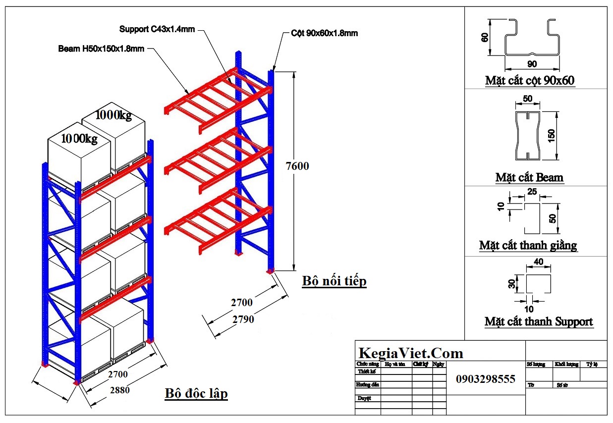 Nếu là kệ hạng nặng, kệ giá công nghiệp thì cơ bản là rất dễ chỉ cần xác định trọng tải của 1 pallet là xong, và mỗi khoang để 2 pallet là đủ khi ấy chỉ cẩn nhân đôi kệ trọng tải là hoàn thành. Tuy nhiên, cần tính toán hệ số an toàn, nghĩa là nếu cần 1 tấn bạn nên cho nó lên 1.2 cho đảm bảo an toàn.