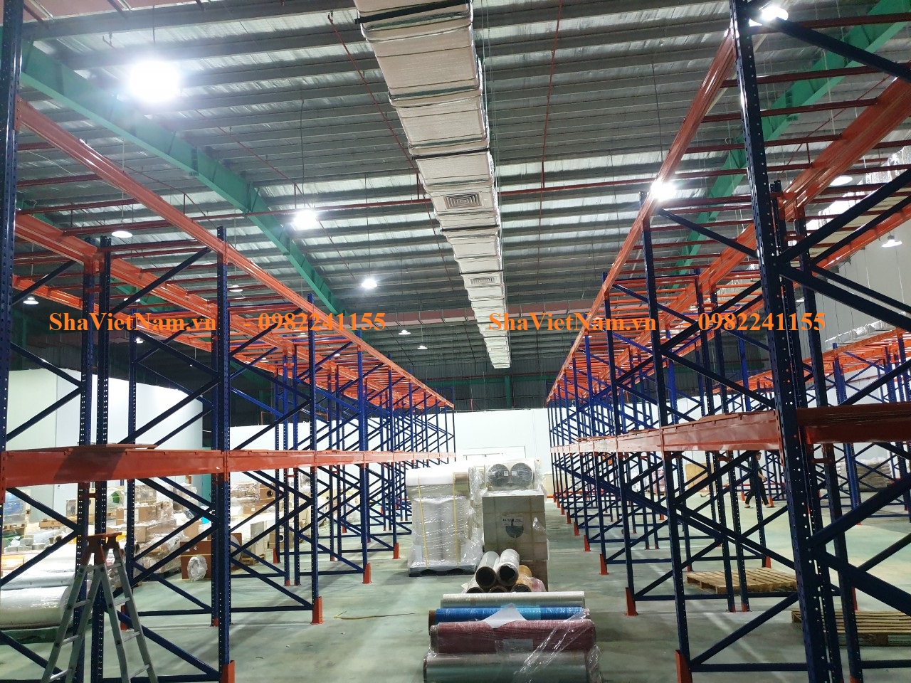 Tại đây, khách hàng đã đặt 48 bộ kệ trung tải các loại, mầu trắng và mầu xanh + cam, là một nhà máy mới tinh mới đang trong quá trình lắp đặt trang thiết bị, máy móc.